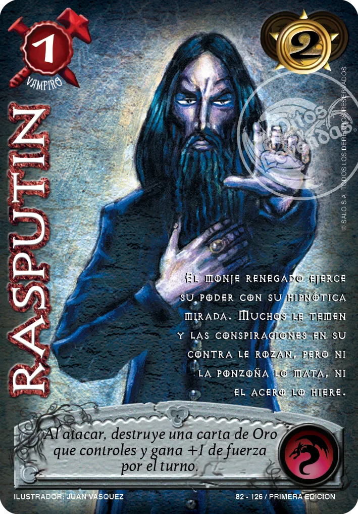 Habilidad: Al atacar, destruye una carta de Oro que controles y gana + 1 de fuerza por el turno.