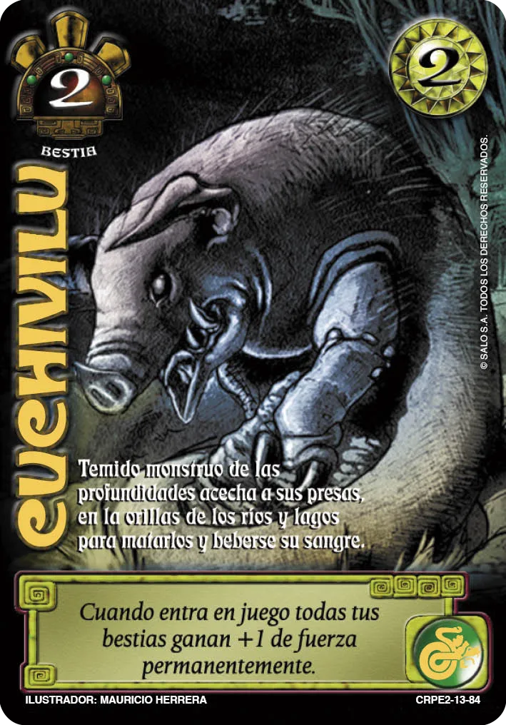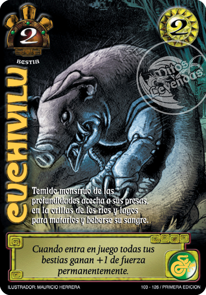 Habilidad: Cuando entra en juego, todas las Bestias que controles ganan 1 a la Fuerza permanentemente.