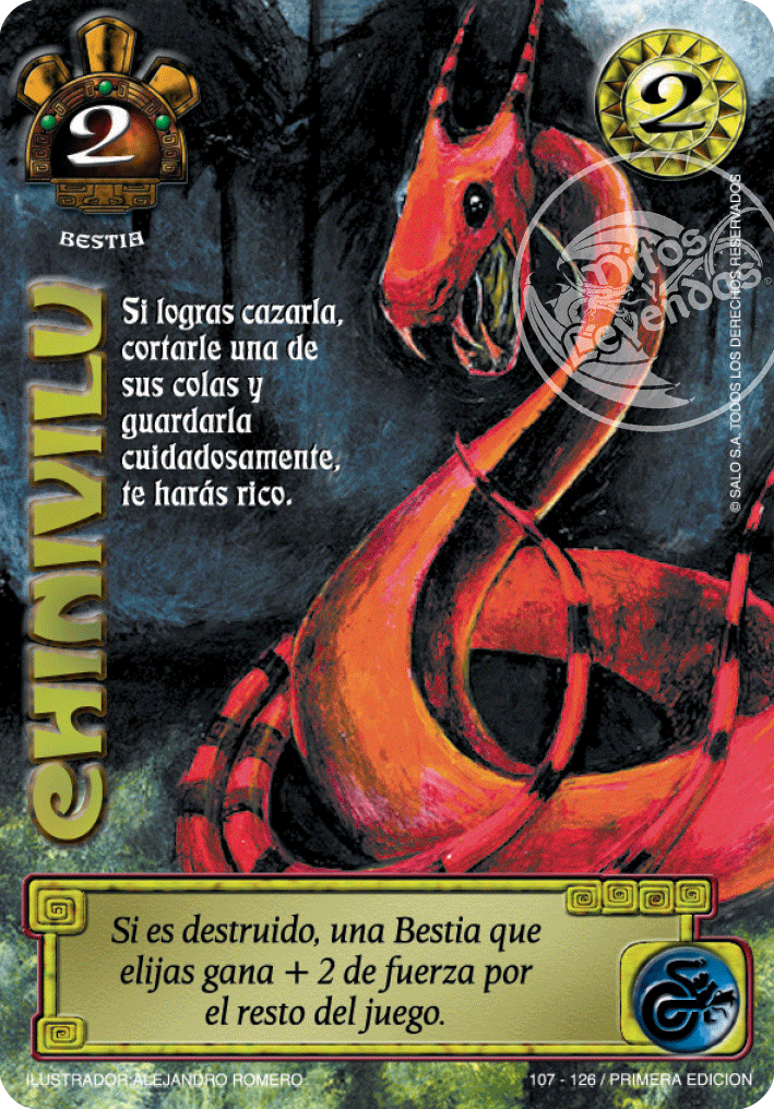 Habilidad: Si es destruido, una Bestia que controles gana +3 a la fuerza permanentemente.