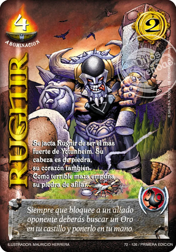 Habilidad: Siempre que bloquee a un Aliado oponente deberas buscar un Oro en tu Castillo y ponerlo en tu Mano.