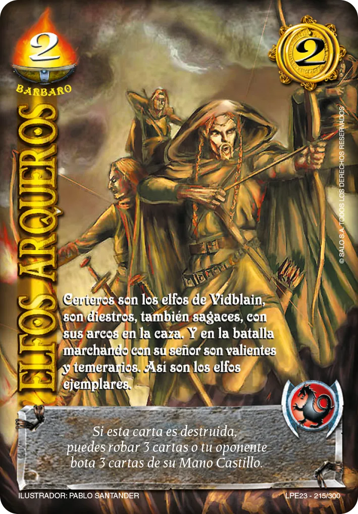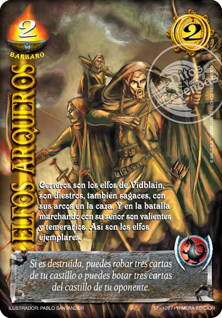 Habilidad: Si es destruida, puedes robar tres cartas de tu Castillo o puedes botar tres cartas del Castillo de tu oponente.