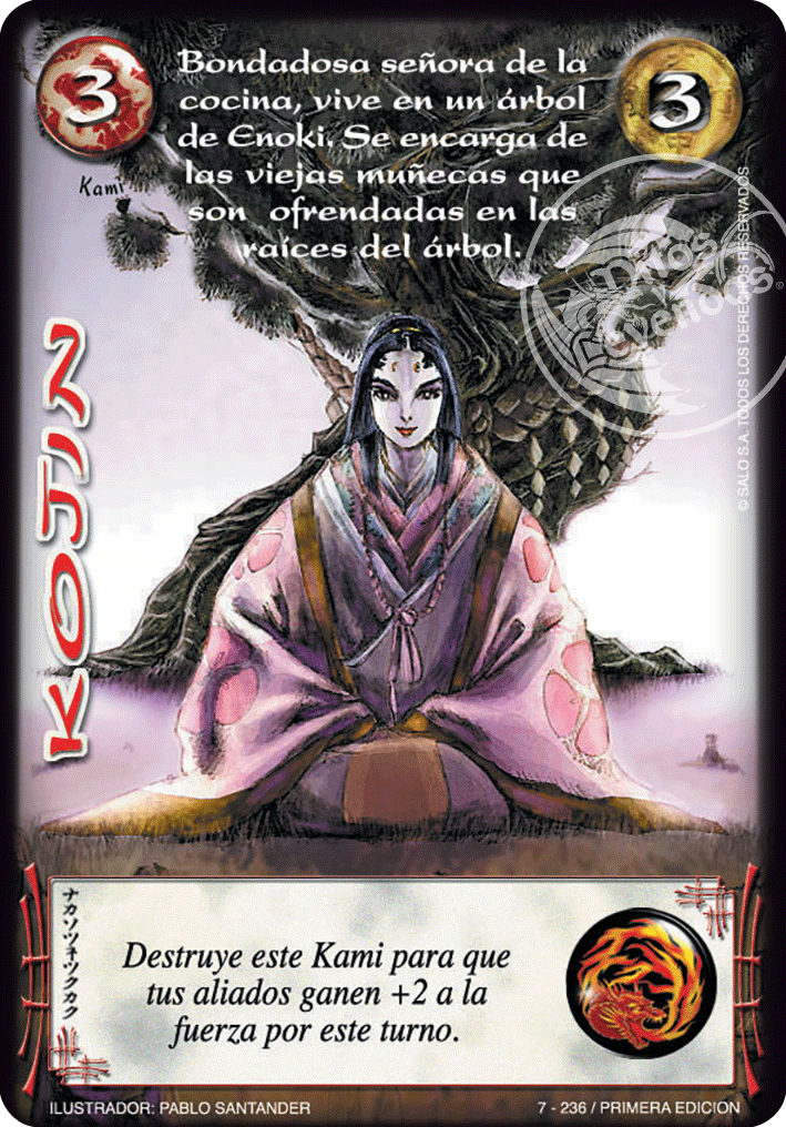 Habilidad: Destruye este Kami para que tus Aliados ganen +2 a la fuerza por este turno.