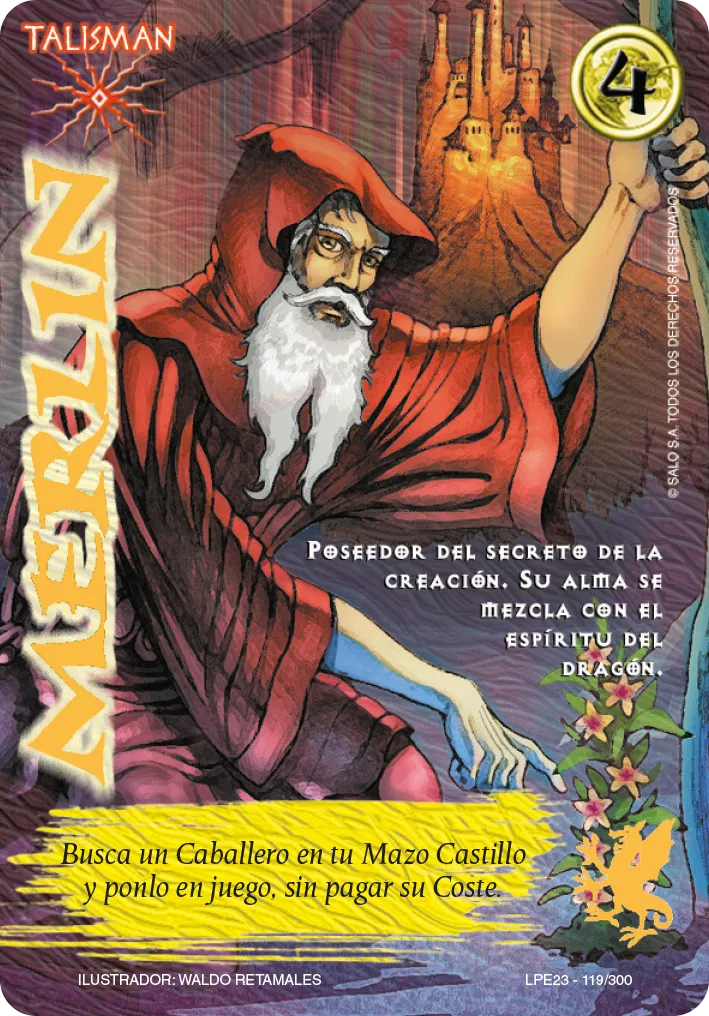 Habilidad: Busca una carta de Caballero en tu Mazo Castillo y ponla en juego.