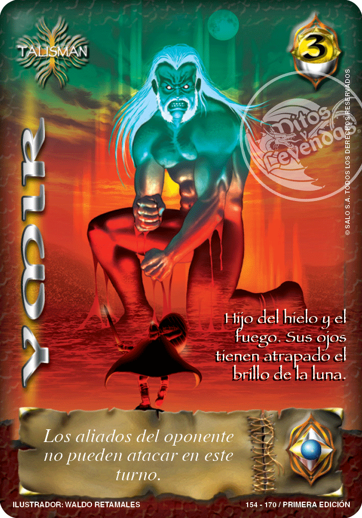 Aclaración: FAQ 2024: en respuesta de la declaración de ataque oponente, puedes jugar este Talismán para cancelarlo. No se podrán disparar habilidades de Aliados que digan “al declarar ataque” o “al ser declarado atacante” o similares. Al cancelar la declaración de ataque, los Aliados vuelven a la linea de defensa y los pasos siguientes de la batalla mitologica no ocurren, por lo cual se pasa directamente a la Fase Final.