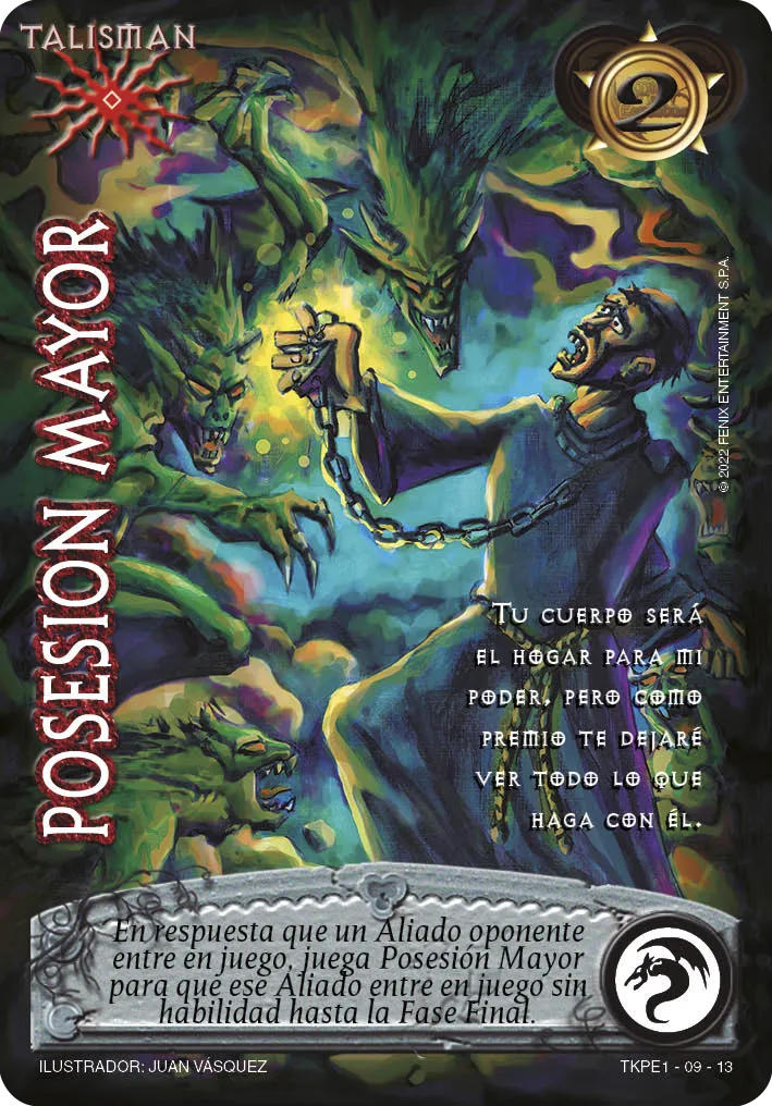 Habilidad: En respuesta que un Aliado oponente entre en juego, juega Posesion Mayor para que ese Aliado entre en juego sin habilidad hasta la Fase Final.