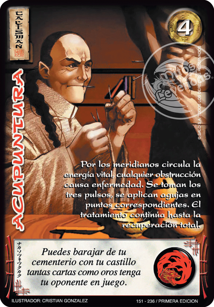 Habilidad: Puedes barajar de tu Cementerio con tu Castillo tantas cartas como Oros tenga tu oponente en juego.