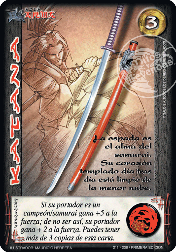 Habilidad: Si su portador es un Campeon gana +5 a la fuerza; de no ser asi su portador gana +2 a la fuerza. Puedes tener mas de 3 copias de esta carta.