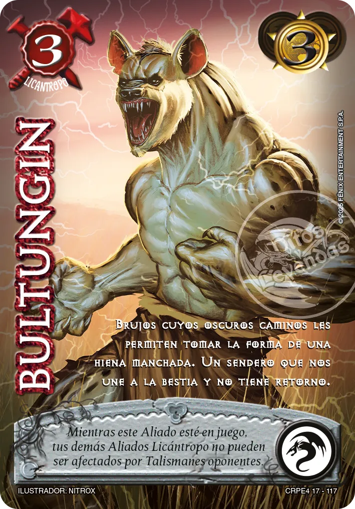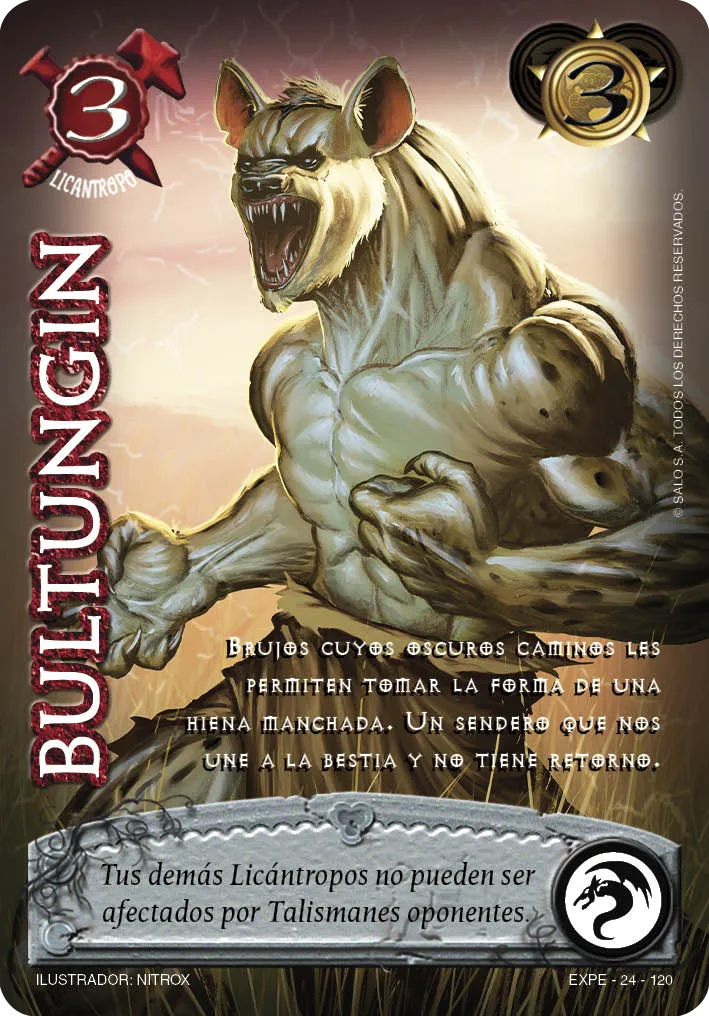 Aclaración: Bultungin solo proteje a tus demás Aliados Licántropos de Talismanes oponentes que hagan objetivo a tus Aliados, no protegerá a tus Aliados Licántropos de aquellos Talismanes que afectar al jugador o a los jugadores como Fuente de Urd, Duelo en el tejado, Mirada de Berserker, entre otros.