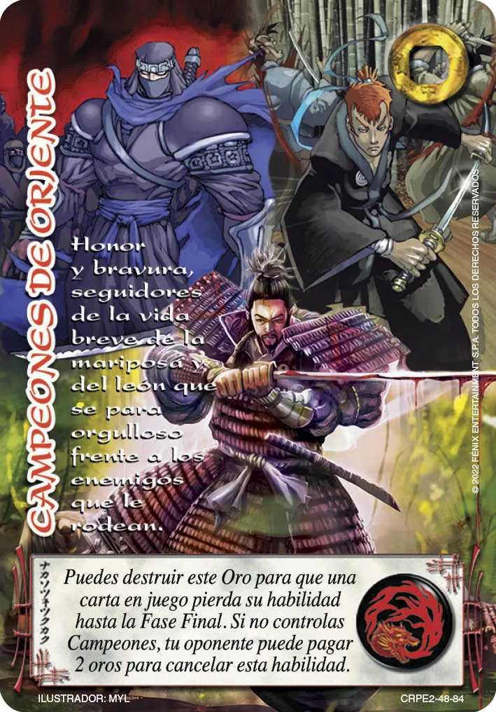 Habilidad: Puedes destruir este Oro para que una carta en juego pierda su habilidad hasta la Fase Final. Si no controlas Campeones, tu oponente puede pagar 2 oros para cancelar esta habilidad.